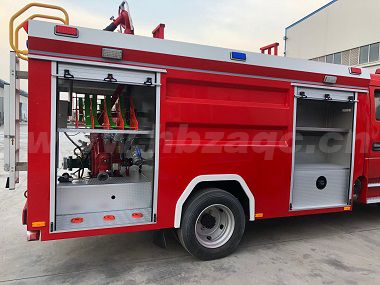 江特牌JDF5110GXFSG50/E6型水罐消防車采用東風(fēng)EQ1125SJ8CDC底盤改裝而成。整車由消防員乘員室和車身兩大部分組成,乘員室為雙排,可乘坐3+3人,該車為外露罐結(jié)構(gòu),車身前部為器材箱,中部為水罐,后部為泵房。載液罐體為優(yōu)質(zhì)碳鋼,與底盤采用彈性連接,載水5000kg,裝備了上海茸申消防設(shè)備有限公司生產(chǎn)CB10/30-RS型低壓消防泵,額定流量30L/S,車頂安裝成都威斯特消防機(jī)械有限公司生產(chǎn)的PS30W型車用消防炮。該車輛結(jié)構(gòu)緊湊,配置完備,機(jī)動性強,能夠及時應(yīng)對企業(yè),社區(qū)或重點消防單位的火情,可以第一時間形成小型戰(zhàn)斗力進(jìn)行初期火災(zāi)的撲救和人員疏散撤離??蓮V泛應(yīng)用于消防救援站,政府專職消防隊,企業(yè)專職消防隊等。