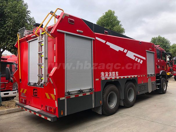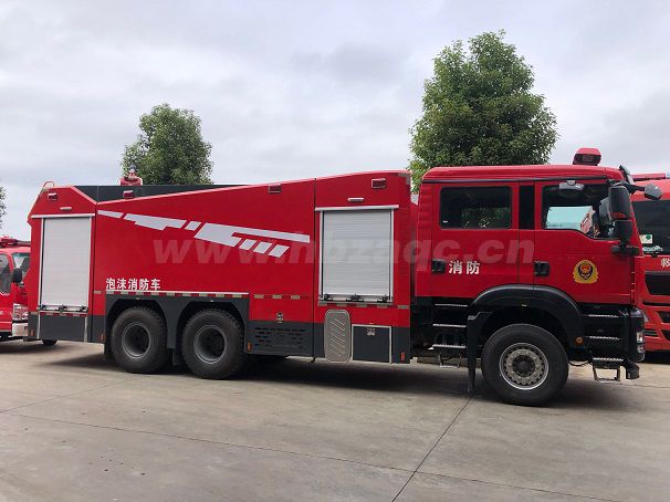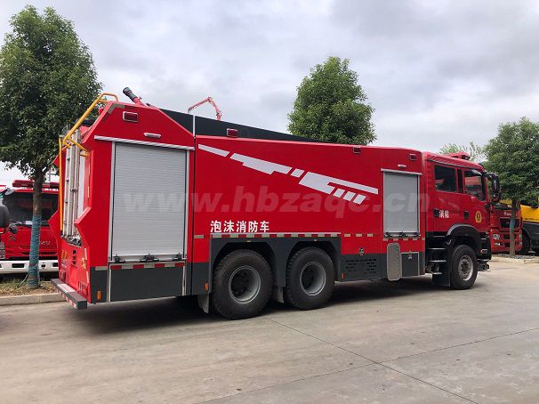 江特牌JDF5290GXFPM130/Z6型泡沫消防車采用重汽汕德卡ZZ5356V524MF5底盤改裝而成。整車由消防員乘員室和車身兩大部分組成,乘員室為原裝雙排,可乘坐2+4人,該車為外露罐結(jié)構(gòu),車身前部為器材箱,中部為罐體,后部為泵房。載液罐體為優(yōu)質(zhì)碳鋼,內(nèi)部噴涂環(huán)氧底漆及環(huán)氧瀝青漆,與底盤采用彈性連接,載水量10700kg,泡沫液量2100kg,裝備了上海茸申消防器材有限公司生產(chǎn)CB10/60-RS型中低壓消防泵,額定流量60L/S,車頂安裝成都威斯特消防機(jī)械有限公司生產(chǎn)的PL8/48型車用消防炮。該車最大的特點(diǎn)是載液量大、操控性好、維修簡便??蓮V泛應(yīng)用于公安消防隊(duì)、廠礦企業(yè)及社區(qū)、碼頭等場(chǎng)所,撲救大型油類火災(zāi)和一般物質(zhì)火災(zāi)。