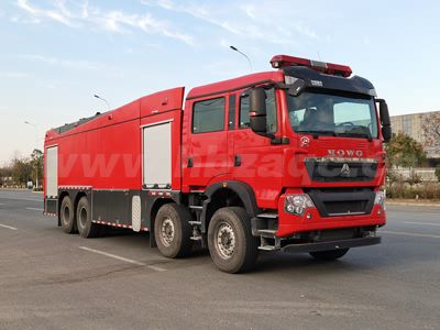 江特牌JDF5370GXFSG180/Z6型水罐消防車采用中國重汽集團濟南卡車股份有限公司生產(chǎn)的ZZ5447TXFV466MF5底盤改裝而成。整車由消防員乘員室和車身兩大部分組成,乘員室為原裝雙排,可乘坐2+4人,該車為外露罐結(jié)構(gòu),車身前部為器材箱,中部為罐體,后部為泵房。載液罐體為優(yōu)質(zhì)碳鋼,內(nèi)部噴涂環(huán)氧底漆及環(huán)氧瀝青漆,與底盤采用彈性連接,載水量18000kg,裝備了上海茸申消防設(shè)備有限公司生產(chǎn)的CB10/80-RS型常壓消防泵,額定流量80L/S,車頂安裝成都威斯特消防機械有限公司生產(chǎn)的PS8/80W型車用消防炮。該車最大的特點是載液量大、操控性好、維修簡便??蓮V泛應用于公安消防隊、廠礦企業(yè)及社區(qū)、碼頭等場所,撲救大型油類火災和一般物質(zhì)火災。